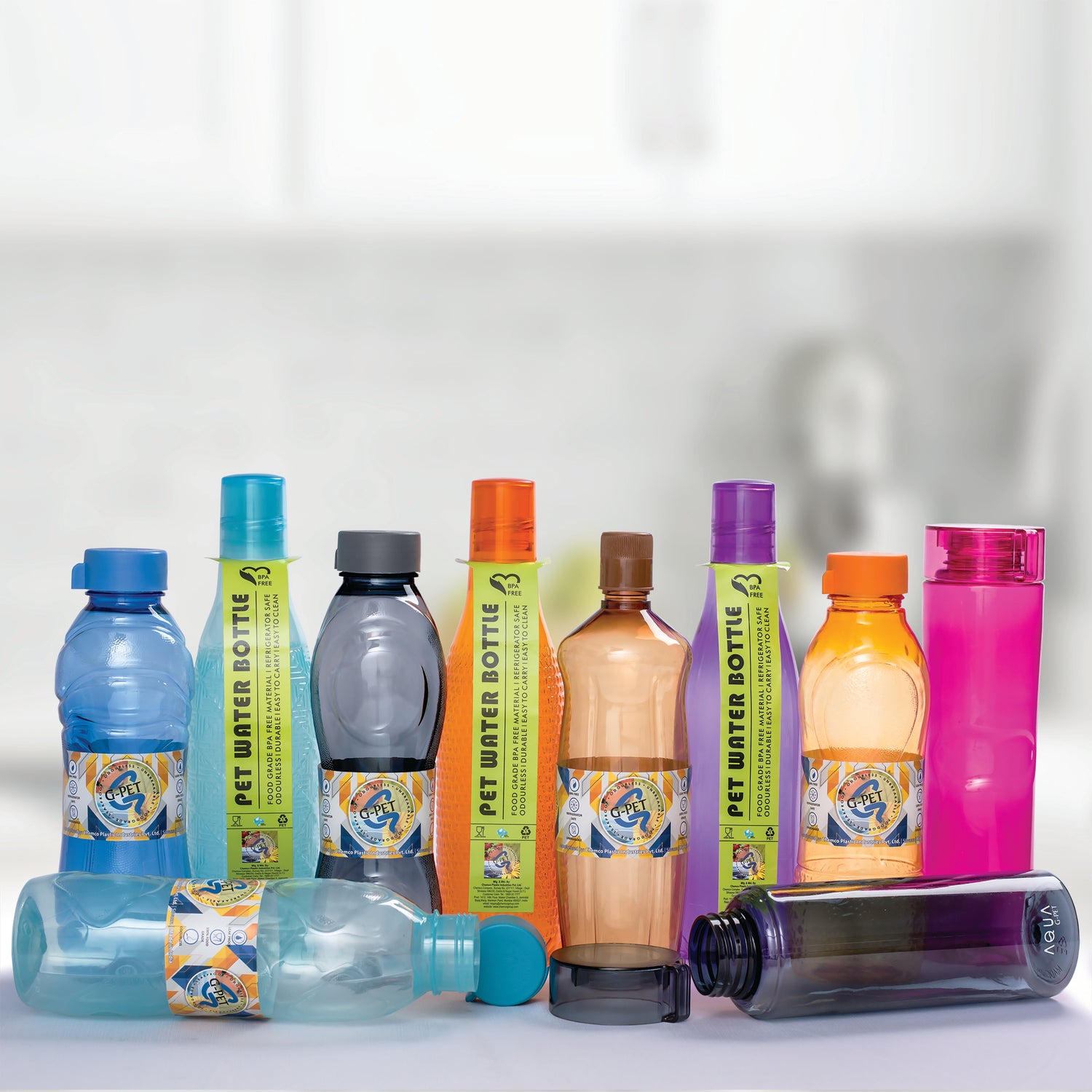 Polypropylene Bottle set, 1 Litr (Set Of 6, Iceberg-Multicolor)